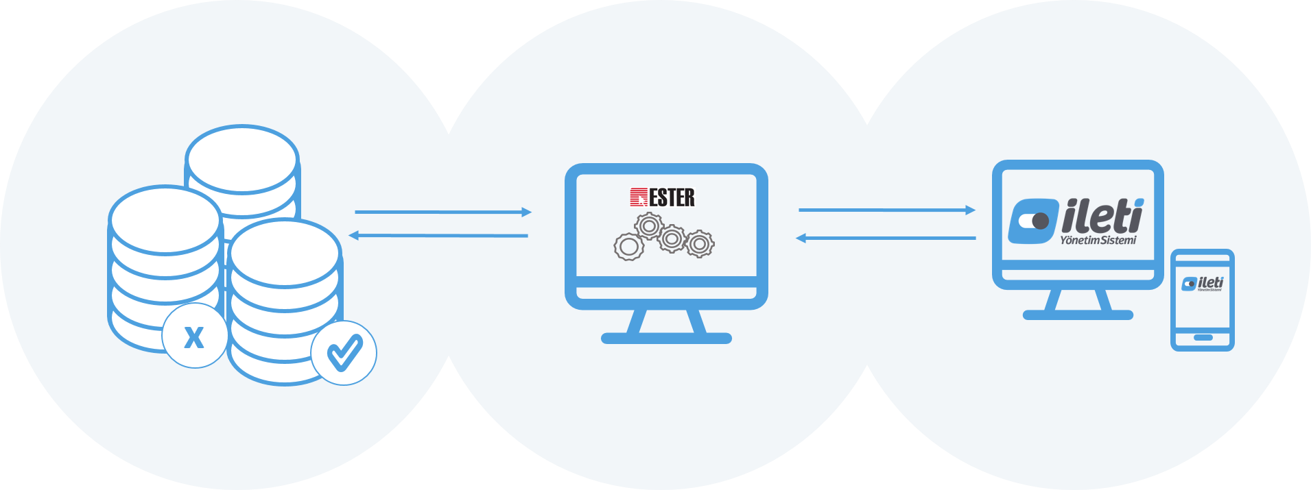 ESTER entegrasyon hizmeti ile günlük onay ve ret trafiğinizi, anlık olarak İleti Yönetim Sistemi’ne ve İleti Yönetim Sistemi üzerinden müşterilerinizin vereceği onay ve ret durumları da sistemlerinize iletilir ve senkronizasyon sağlanır.
